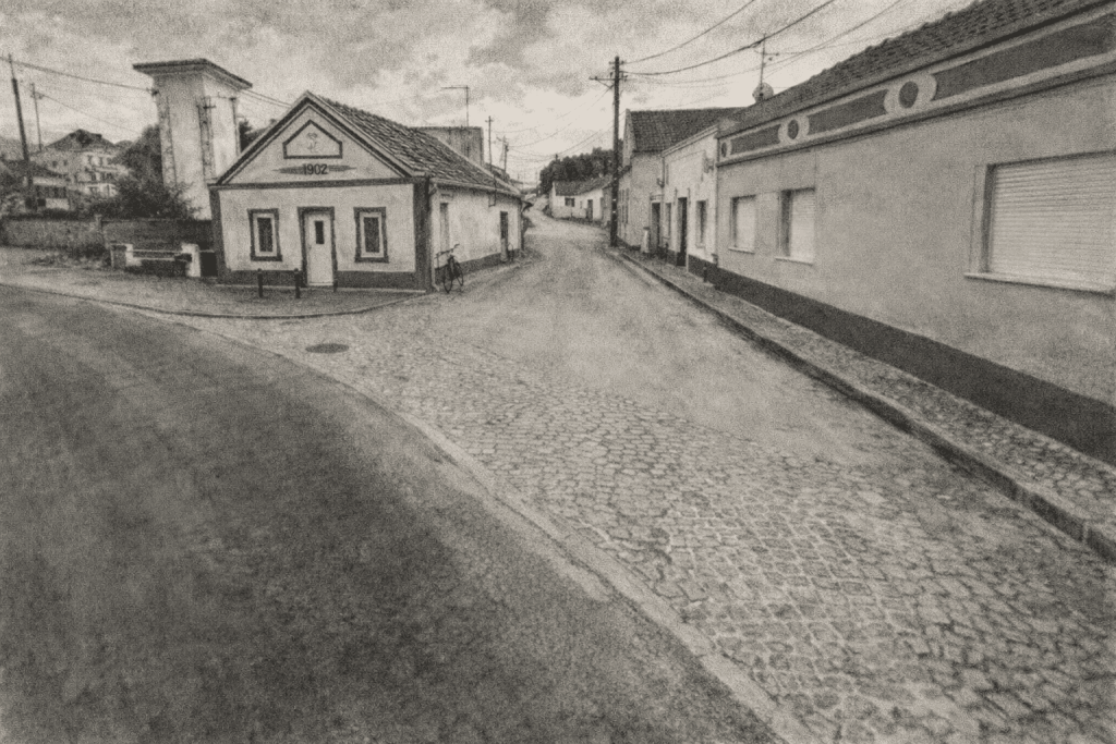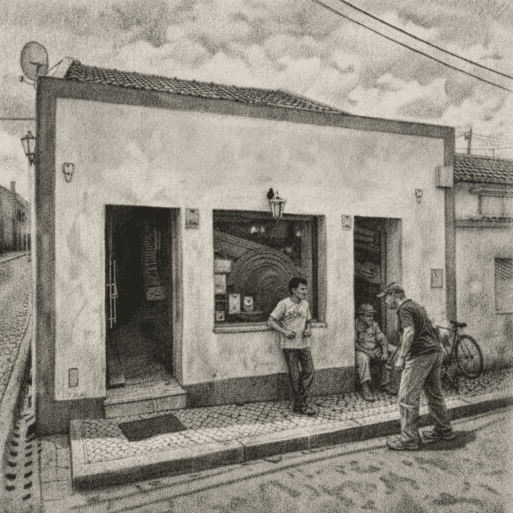 Entre cafés partilhados, conversas sem pressa e mesas gastas pelo uso, o largo foi ponto de encontro da aldeia: o café da Dona Soledade, a taberna da Ti Maria da Ajuda, as tardes de domingo preenchidas por vozes, risos e histórias. À beira da estrada nacional, os carros passavam, mas ali o tempo obedecia a outras regras — as da proximidade, da escuta e da vida vivida em comunidade.
